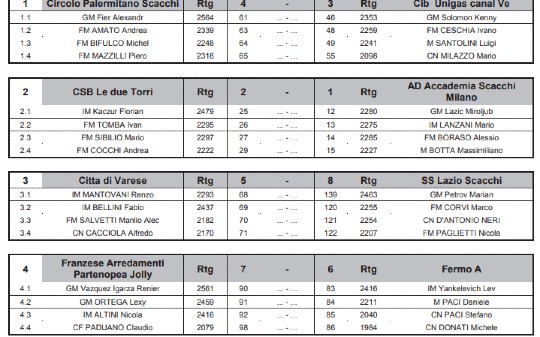 | 7 | ASD Arrocco Chess Club Roma | Roma | 2421 | B |