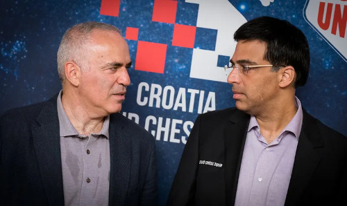 I precedenti, “according to chessgames”: Only rapid/exhibition games: Garry Kasparov beat Viswanathan Anand 11 to 7, with 16 draws; ma io “faccio partire favorito” (tra virgolette, perché so di non contare a riguardo) Anand, con 7 anni in meno (62-55) che sanno avere importanza a cadenze veloci e che si vede ancora in giro R&B (ultima apparizione ufficiale Rapid in lista di luglio, con un 5/7 al mondiale per club, battendo Erigaisi) mentre il Campionissimo russo si è reso conto qualche anno fa a Zagabria con ½/9 che ormai “persino lui” deve applicarsi per competere da pensionato. Da allora si è scosso e ha ripreso a mostrarsi capace di punire parecchi”giovinastri” in partita secca, “teme orologio e benzina”, si può immaginare si presenterà preparato contro l’antico rivale, “si ride e si scherza” ma io non immagino Kasparov non prendere seriamente una “rivincita”. È 960, non si chiede ai due vecchi leoni di essere aggiornati sulle ultime nuance teoriche, possiamo scommettere sul loro senso della posizione.