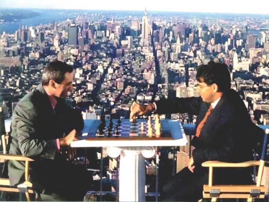 Io direi proprio di sì. “Sono arrugginiti, uno fa l’attivista, l’altro il burocrate”, tutto quello che si vuole ma io, dopo essermi alzato e tolto il cappello, mi risiedo comodo sul divano e mi preparo a guardare i due giganti battagliare ancora una volta tra loro. Vederli qui 30 anni dopo un Mondiale è davvero un piacere. Kasparov ha dichiarato con un sorriso che è lieto di offrire ad Anand una chance di ricucire il distacco complessivo testa a testa (“tutto incluso” e sempre da chessgames Kasparov beat Anand 26 to 10, with 46 draws), credo anche molti di noi siano felici di poter assistere al tentativo. Ci saranno qualche ?! in più di una volta in Sala analisi? Non è problema 🙂