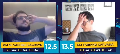 Caruana davanti fino al 7-4 ma poi scompare dal match e subisce un 6,5-0,5! Quando mancano 25′ di Bullet, la sfida sembra destinata a finire con una goleada.